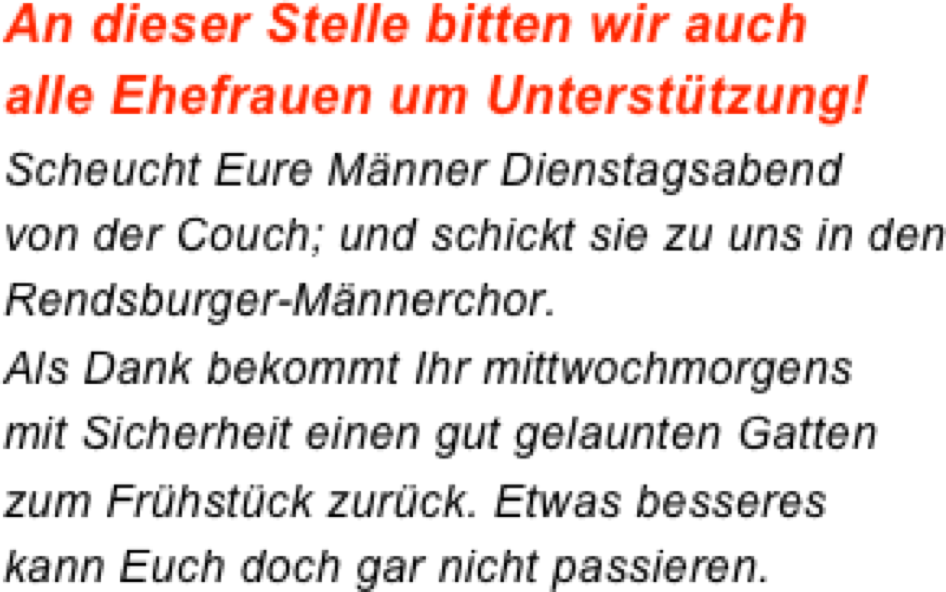 Wenn Du Lust hast, den Rendsburger-Männerchor einmal zu erleben, dann besuch uns doch.